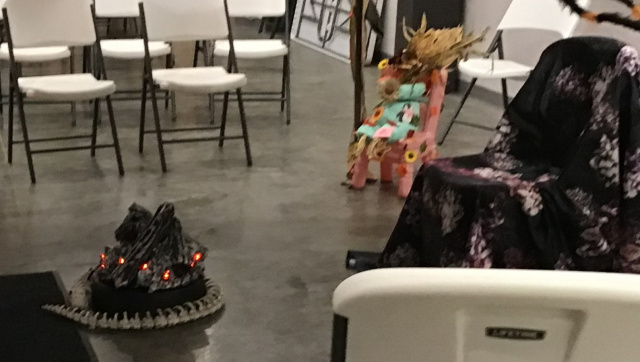 India Watson (also known as I M Watson) is a published author of spooky & scary storytelling. She set the scene, a tent, the scarecrows, low lighting and a faux fire pit for her story. Several young and brave souls attended the successful event with family members.