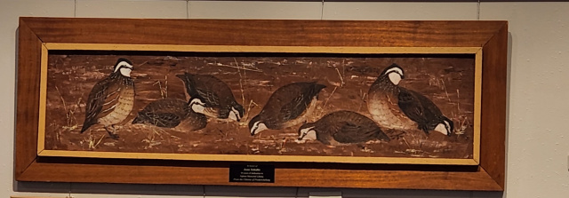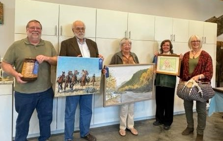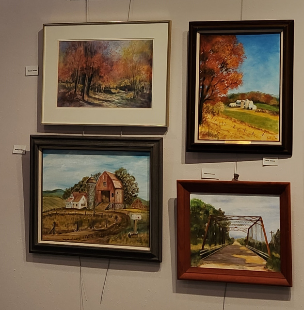 On April 13th the Plum Creek Art Center/Connie Mohr Gallery hosted the NE Iowa Region 3 juried art show. There were 20 artists with 49 art pieces presented. Their judge was David Kamm, a retired art professor from Luther College in Decorah, IA. Professor Kamm judged and critiqued the art pieces by placing them in a catagory of blue, red, white, and honorable mention. Additionally, there was a "Peoples Choice" selection by the attendees: artists and the public. The blue ribbon winners will advance to the state show on April 27, 2024 in Newton, IA at the Newton Arboretum and Botanical Gardens.
