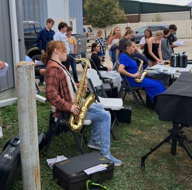 One jazz group warming up. One quartet playing, directed by Ethan Koch, high school music director.