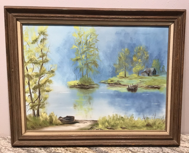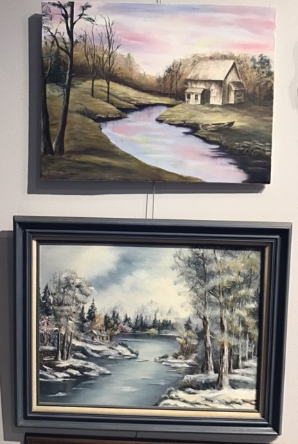 Sharon liked to paint landscapes, any time of the year. Her winter landscapes and those with water were exceptional (in the authors' perception).